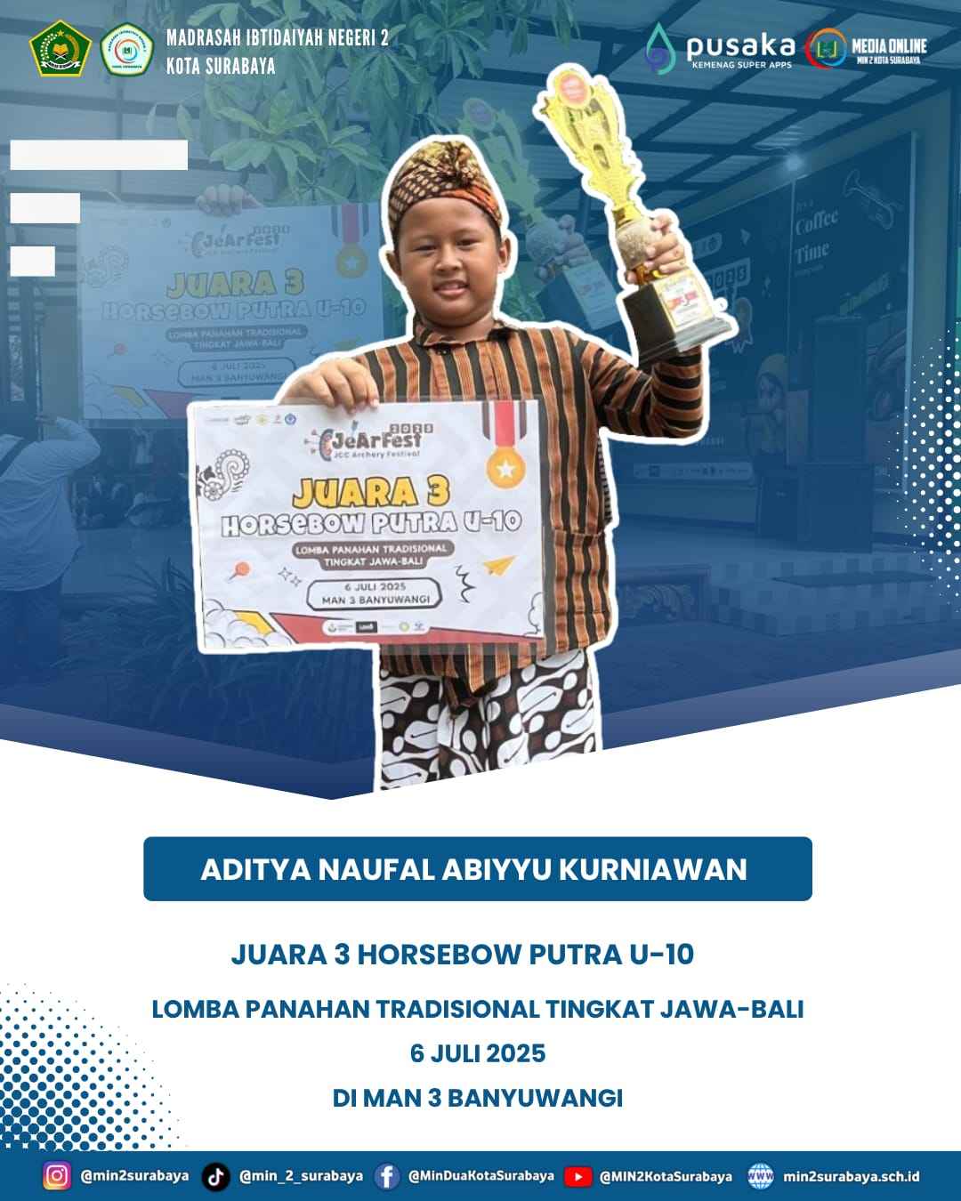 | ADITYA NAUFAL ABIYYU KURNIAWAN | 3169927111 | Juara 3 Horsebow (Panahan Tradisional) | Tingkat Jawa-Bali | 2025 | Foto | |