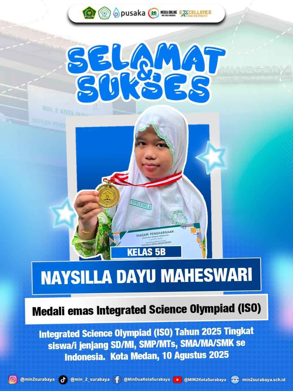 | NAYSILLA DAYU MAHESWARI | 3156750678 | Juara 1 Integrated Scince Olympiad (ISO) | Tingkat Nasional | 2025 | Foto | |