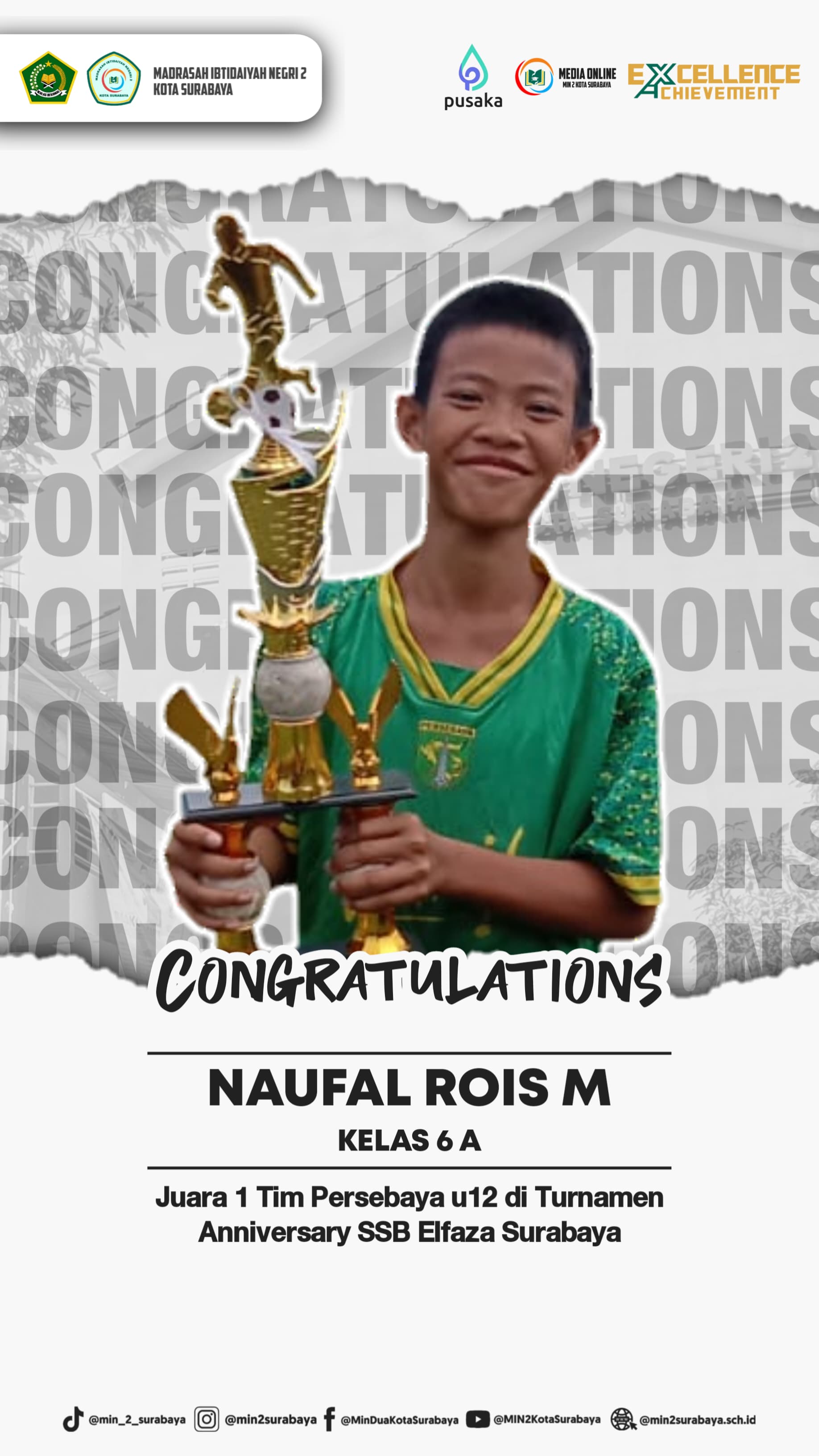 | NAUFAL ROIS MURTADHO | 3132404311 | Juara 1 Tim Persebaya U-12 Turnamen Annyversary SSB Elfaza Surabaya | Tingkat Kota | 2025 | Foto | |