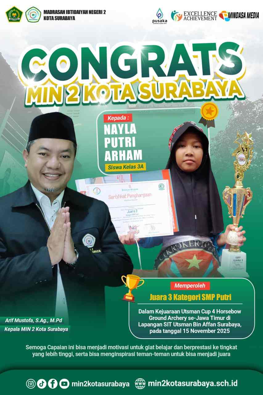 | NAYLA PUTRI ARHAM | 0155657487 | Juara 3 dalam Kejuaraan Utsman Cup 4 Horsebow | Tingkat Provinsi | 2025 | Foto | |