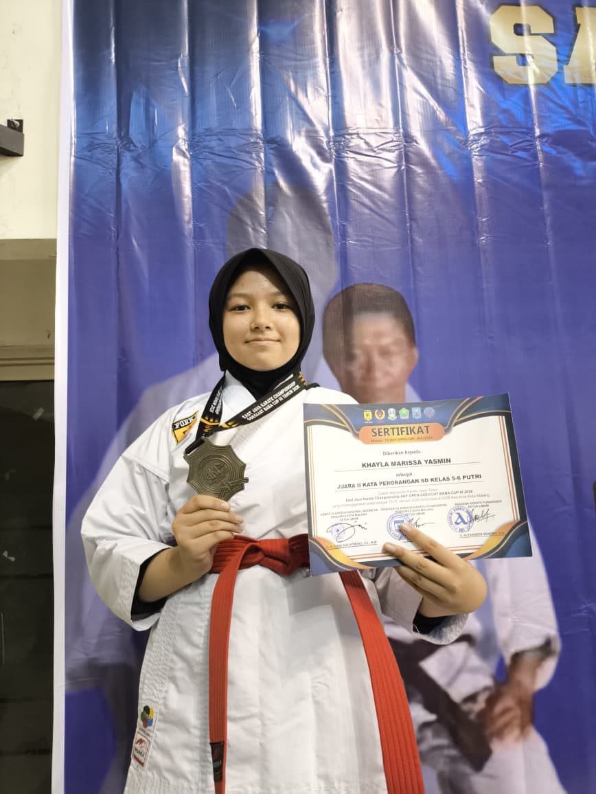 | KHAYLA MARISSA YASMIN | 0135642287 | Juara II Kata Perorangan SD Kelas 5 - 6 Putri | Tingkat Provinsi | 2026 | Foto | |
